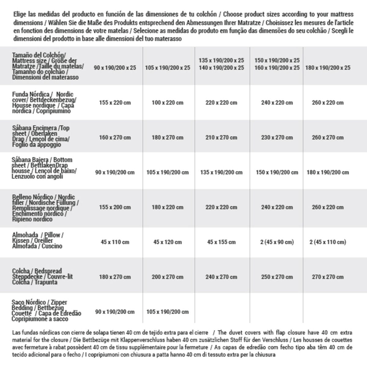 - Bed 135: 135 x 190/200 cm